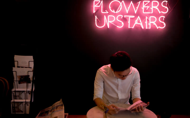 Perhaps you’re wondering what’s up with the neon sign. ‘Flowers upstairs’ might sound like another total random phrase but this cafe has literally got flowers upstairs.