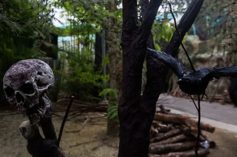 I was finally ushered into HEX’s entrance grounds, the main event of the day. Even though it was still under construction, the typical Halloween ornaments were already set up. Crows and skulls have been sporadically placed around the walkways to raise your anticipation.