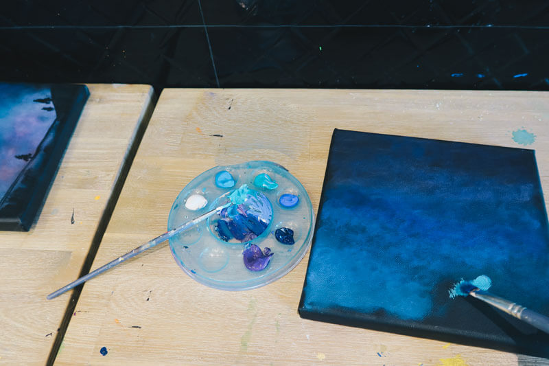 When I was doing just that, I messed up big time. There was a huge blob of white paint on my canvas but thankfully, the staff swooped in to save the day by removing it for me.