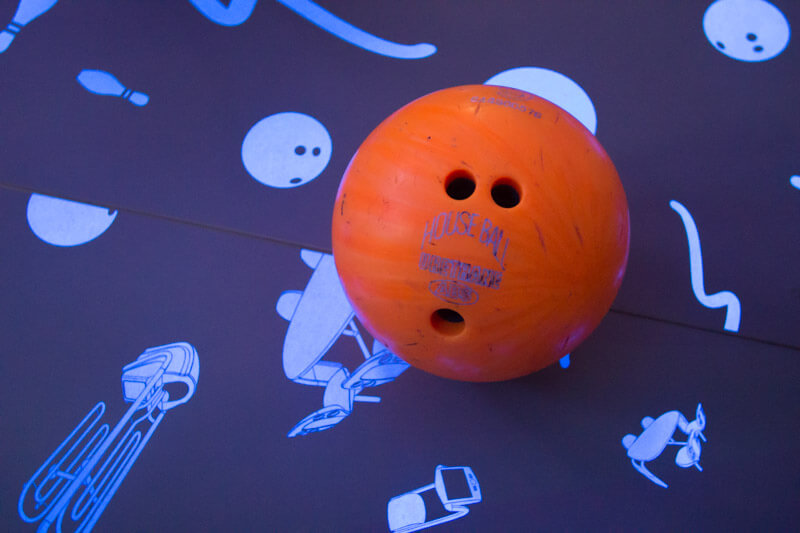 Cosmic bowling is bowling with a twist — the lights are dimmed and the pins light up! You get to bowl with luminous balls and pins in a glow-in-the-dark atmosphere, with disco lights and dance music.