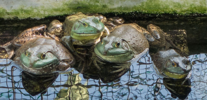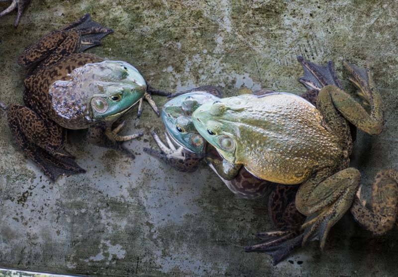Bullfrogs are named as such because of their distinct call, which sounds like a cow’s moo.