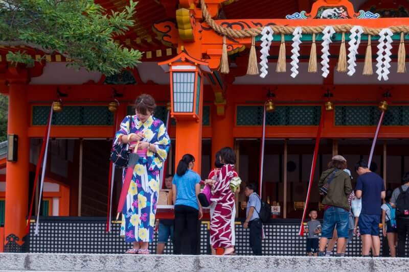 There are shophouses located right at the base of the shrine, where you can rent kimonos and yukatas or simply purchase souvenirs to take home.