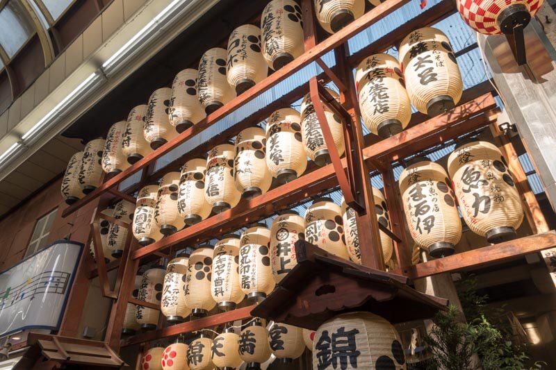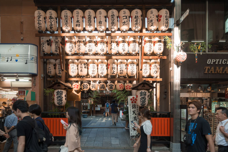 One would never expect to find a shrine located among the numerous storefronts and souvenir shops, but as odd as that is, the Nishiki Tenmagu Shrine (錦天満宮) resides here.