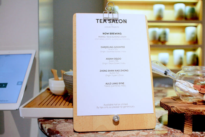I ordered a cup of caffeine-free Auld Lang Syne and it came in a really nice set, complete with its own pairing (almond crisps) and an information sheet of the blend. The main concept behind pairings is that certain elements in both food and tea interact and finding the right combination makes the entire experience much more enjoyable.