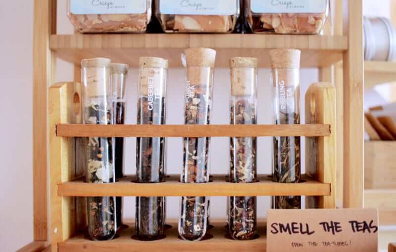 Before purchasing, you are even able to smell the tea leaves stored in these dainty test tubes. Tea varieties not on the menu are available for sale too!