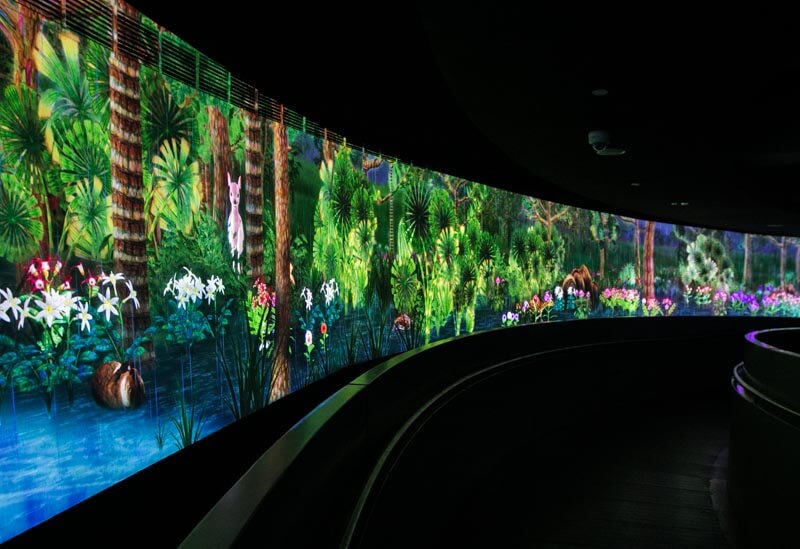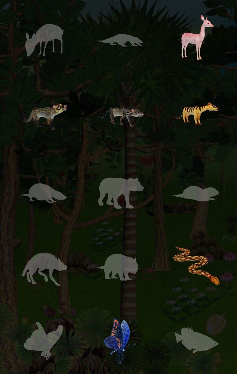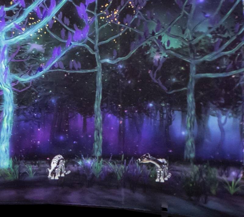 Made to the likeness of those found in the William Farquhar Collection, the “wild” animals here do not follow a fixed pattern when showing up or moving around on-screen.