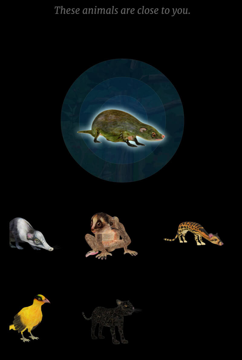 Fire up the app and it’ll start scanning for animals which are near your location. Those that are around you will show up in a live feed which updates as you move around.