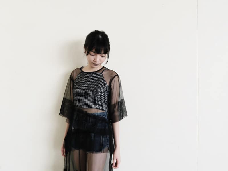 The next piece of clothing with mesh is the Stylenanda Illusion Top (S$49.90), an oversized shirt with a solid grey backdrop and a mesh overlay. This piece is free-sized too. It is most definitely easier to style since you only have to worry about finding a bottom to match it with.