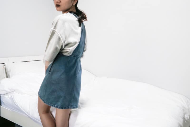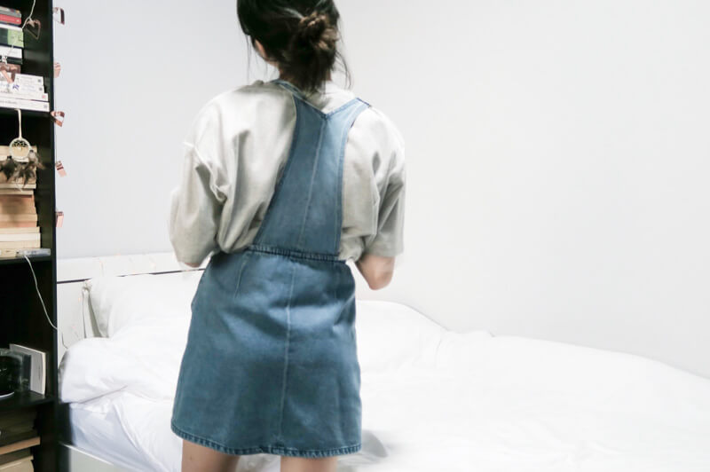 For an even more girly look, you can wear the oversized top as an inner piece by putting on a pinafore. I am wearing a denim piece but other materials for the pinafore will work as well. Since the top is quite plain, you can spice things up by wearing something with patterns.