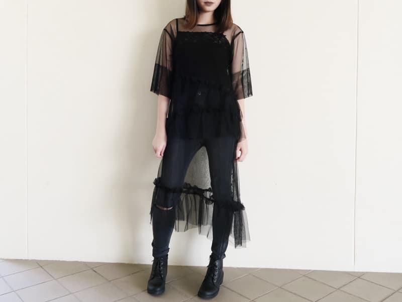 The Frilled Tiered Dress on the other hand, was certainly harder to pull off because the mesh was more in-your-face and practically screamed “look at me!” If you’re a monochrome lover like me though, the mesh dress will definitely be a fun way for you to design all-black outfits.