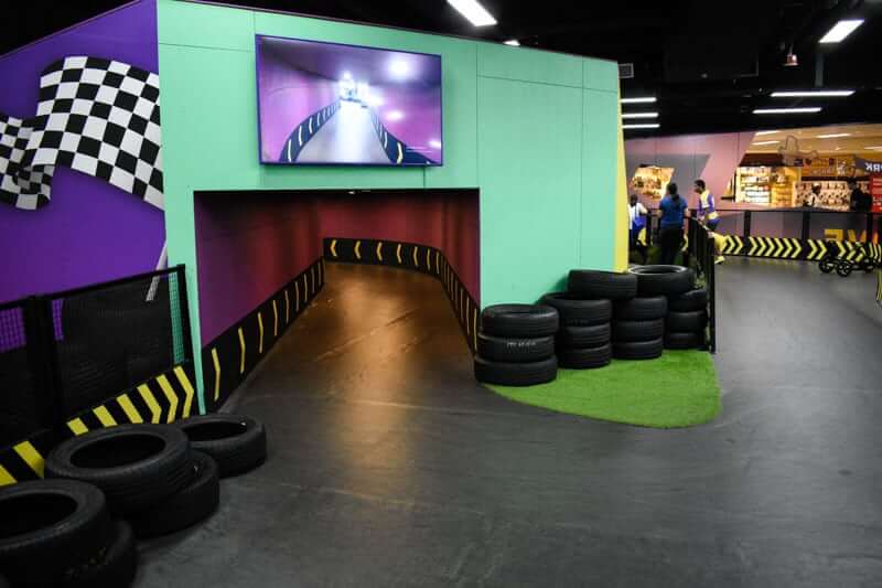 There’s also a mini race track where kids can drive navigate through an obstacle course in a small vehicle.