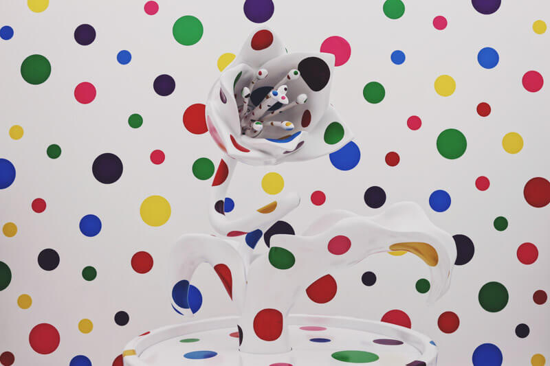 Titled ‘With All My Love For The Tulips, I Pray Forever’, this installation invites visitors to a world filled with dots, mirroring the hallucinations Kusama experienced at a young age. If you have been to ‘The Obliteration Room’ in the Children’s Biennale, you will definitely find this oddly familiar.